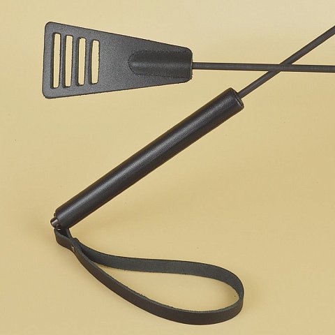 Наручники состоят из двух деталей: основа прямоугольной формы из натуральной кожи черного цвета и ремешок белого цвета с прочной хромированной фурнитурой в виде овального кольца. Расположение ремешка через прорези основной части является декоративным решением, а также служит для лучшей регулировки размера. В комплект входит соединительная цепочка с двумя карабинами.