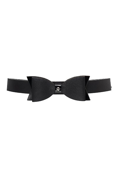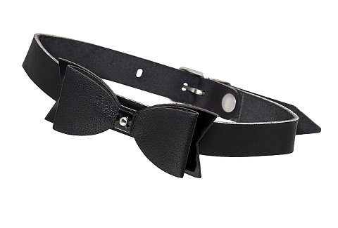 Чокер из натуральной кожи с декоративным элементом в виде большого галстука-бабочки черного цвета и бантиком поменьше. «Бабочка» полностью облегает шею, что определенно вносит разнообразие в любовную игру.
