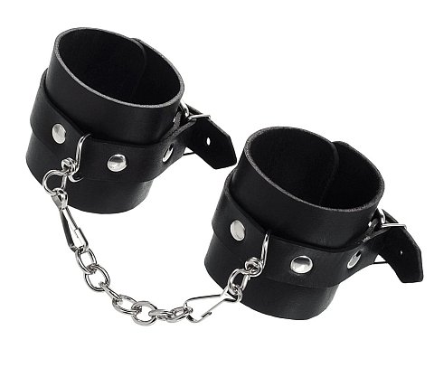 Наручники из натуральной кожи с декоративным элементом в виде двухслойного бантика черного цвета. Благодаря классическому дизайну наручники можно использовать не только для фиксации рук в любовных играх, но и в качестве аксессуара для дополнения образа. В комплекте прочная соединительная цепочка с двумя карабинами.