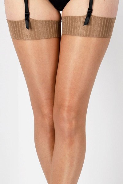Чулки под пояс с блеском, верх чулка в рубчик, полностью сформированные, прозрачный мысок. Плотность - 10 ден.