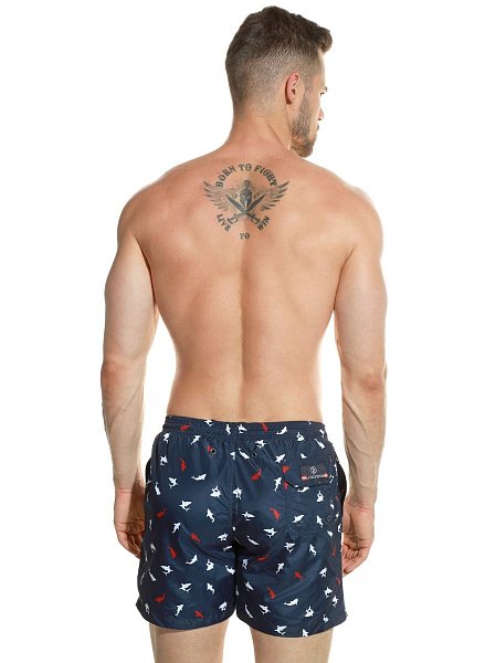 Мужские пляжные шорты из быстросохнущей ткани. Пояс на резинке, регулируется витым шнурком.