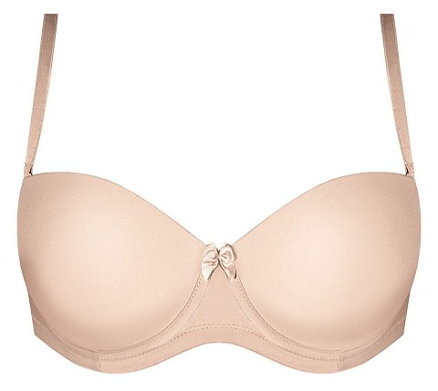 Бюстгальтер Ewa на косточках, чашки формованные со съёмными пуш-ап вкладышами, наружная часть чашек гладкая. Бретельки отстёгиваются, регулируются по длине, на спине застёжка – удлинитель. Силиконовая полоска на спинке позволяет носить бюстгальтер без бретелей.