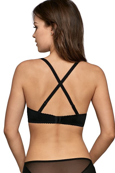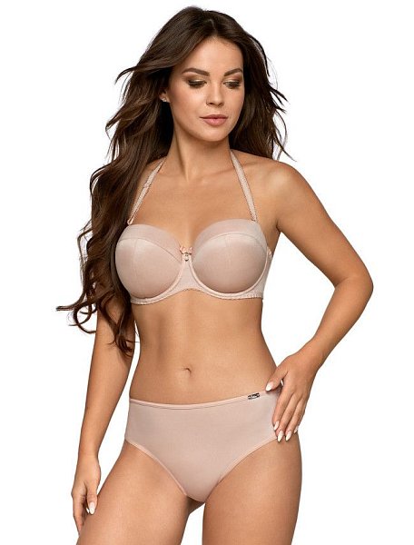 Бюстгальтер 1787 выполнен на косточках, с дополнительными боковыми поддержками, чашки шитые на тонком поролоне со съёмными вкладышами пуш-ап, внешняя сторона из гладкого трикотажа. Бретельки отстёгиваются, регулируются по длине. Силиконовая полоска на спинке позволяет носить бюстгальтер без бретелей. Пояс из плотной корректирующей сетки. На спине застёжка на удлинитель, количество крючков в ряду застёжки увеличивается пропорционально размеру бюстгальтера.