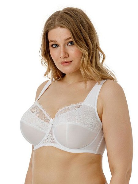 Бюстгальтер на каркасах с мягкой чашкой. Чашки имеют Т-образное членение, что позволяет придать груди правильную округлую форму. Широкий стан с боковыми упругими пластинами плотно облегает тело и обеспечивает стабильную комфортную посадку бюстгальтера на фигуре.