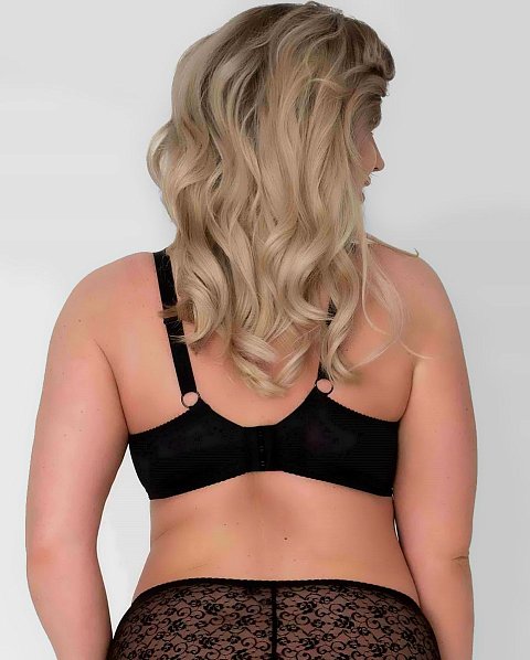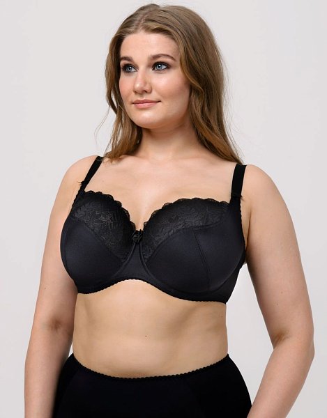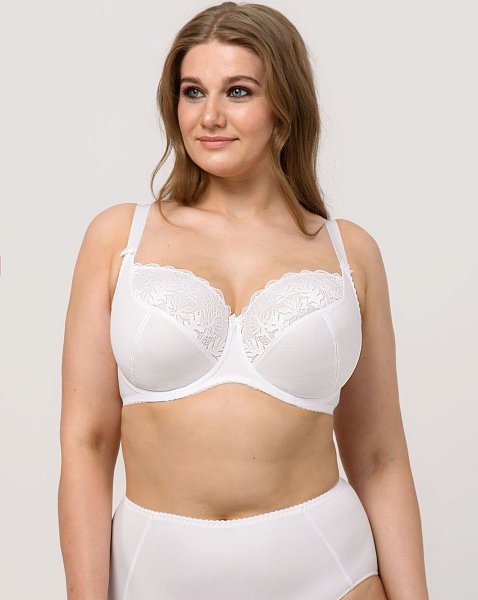 Бюстгальтер на каркасах с мягкой чашкой. Чашки овальной формы с диагональным членением создают округлую наполненную форму, эффектно приподымая грудь. Широкий стан плотно облегает тело, снимает нагрузку с плечевого пояса и обеспечивает стабильную комфортную посадку бюстгальтера на фигуре.