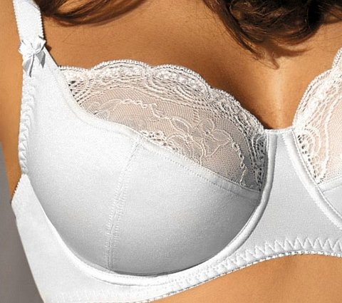 Бюстгальтер с мягкой чашкой. Лёгкий бюстгальтер новой конструкции на большую размерную группу. Нижние детали чашки из полотна, верхние кружевные.