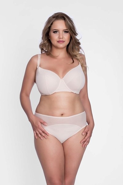Бюстгальтер на косточках, с боковыми поддержками, чашки шитые, из микрофибры - двойная верхняя часть. Бретельки пришиты, регулируются по длине, на спине застёжка - удлинитель на крючках.