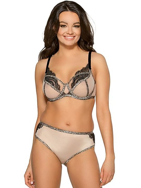 Бюстгальтер на косточках, с боковыми поддержками, чашки шитые, из микрофибры, верхняя часть из сетки с двойной тесьмой. Бретельки пришиты, регулируются по длине, на спине застёжка - удлинитель на крючках.