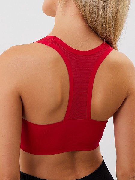 Топ со спинкой-сеткой, бесшовный, формованные вставки вынимаются, пояс широкий, ткань - микрофибра, очень комфортный. В наборе 2 топа - красный и черный.