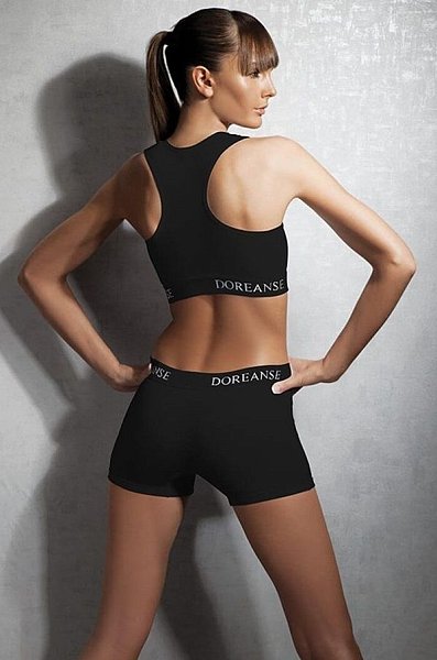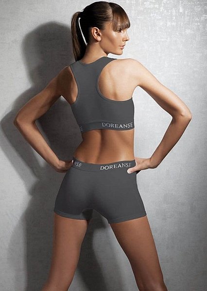 Удобный трикотажный спортивный бюстгальтер. На спине стильный спортивный вырез. Под грудью мягкая пришивная резинка с фирменным логотипом «Doreanse». Идеальное сочетание натуральных волокон (хлопок + модал) обеспечивает максимум комфорта как для повседневного ношения, так и для занятий спортом.