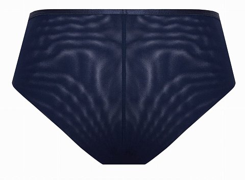 Трусики-шорты спереди из кружевного полотна, продублированного эластичной телесной сеткой, спинка из сетки, сложенной вдвое. Ластовица проложена 100% хлопком.