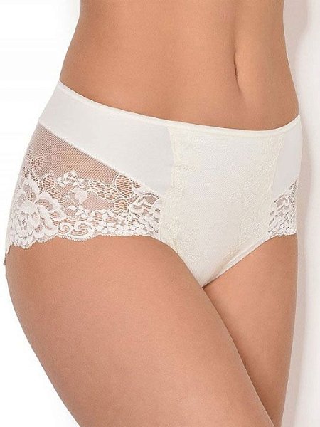 Трусы-слип с высокой линией талии из эластичной микрофибры в сочетании с плоским цветочным кружевом с бесшовным краем сзади. Высота бочка 14 см. Передняя кружевная часть дублирована микрофиброй, что обеспечивает легкую поддержку зоны живота. Пояс обработан плоской резинкой 0,5 см. Ластовица выполнена из уникального хлопкового материала.